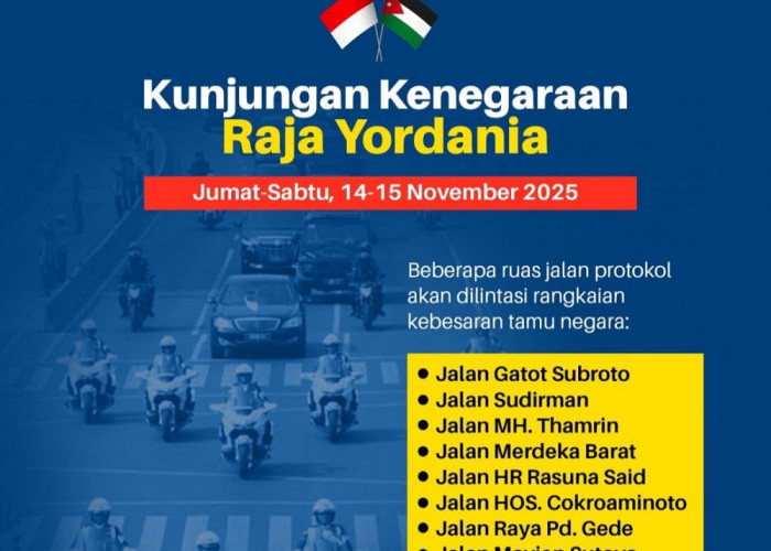 Direktur Lalu Lintas Polda Metro Jaya, Kombes Komarudin mengatakan tidak ada penutupan jalan secara permanen di Jakarta selama rangkaian kunjungan kenegaraan Raja Yordania pada Jumat dan Sabtu, 14-15 November 2025.